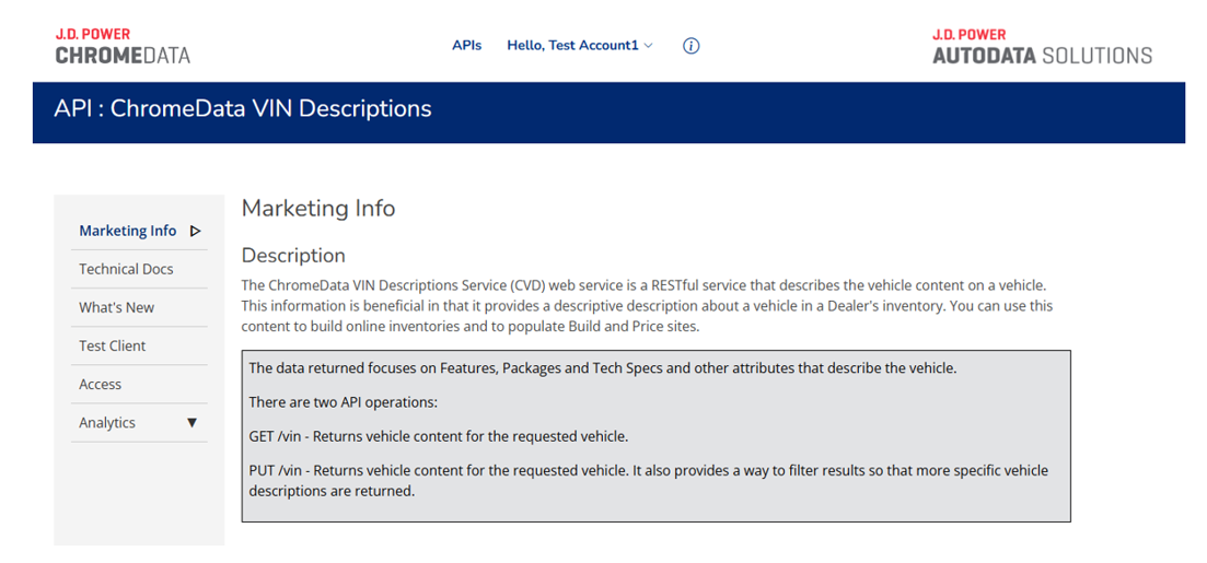 - This will take you to the Customer API Portal homepage https://portal.jdpower.com/
