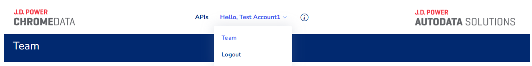 - Select the dropdown for your Hello [Customer Name] at the top of the Customer API Portal page and choose Team.