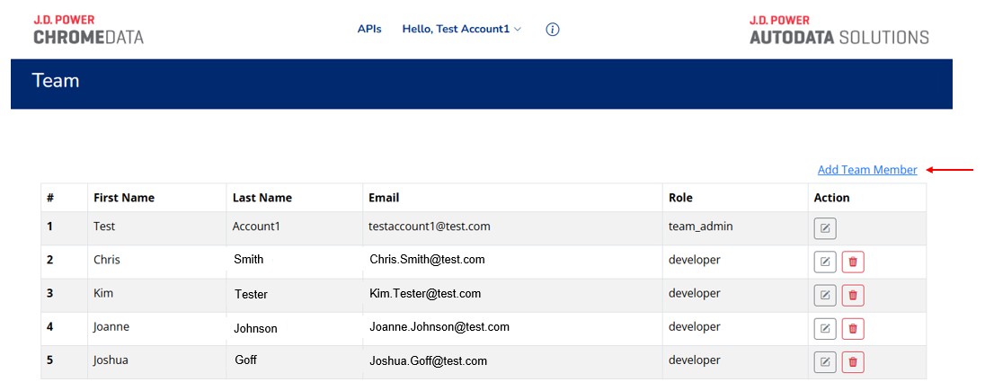 - If you wish to edit or delete a team member, there are icons to perform either task.